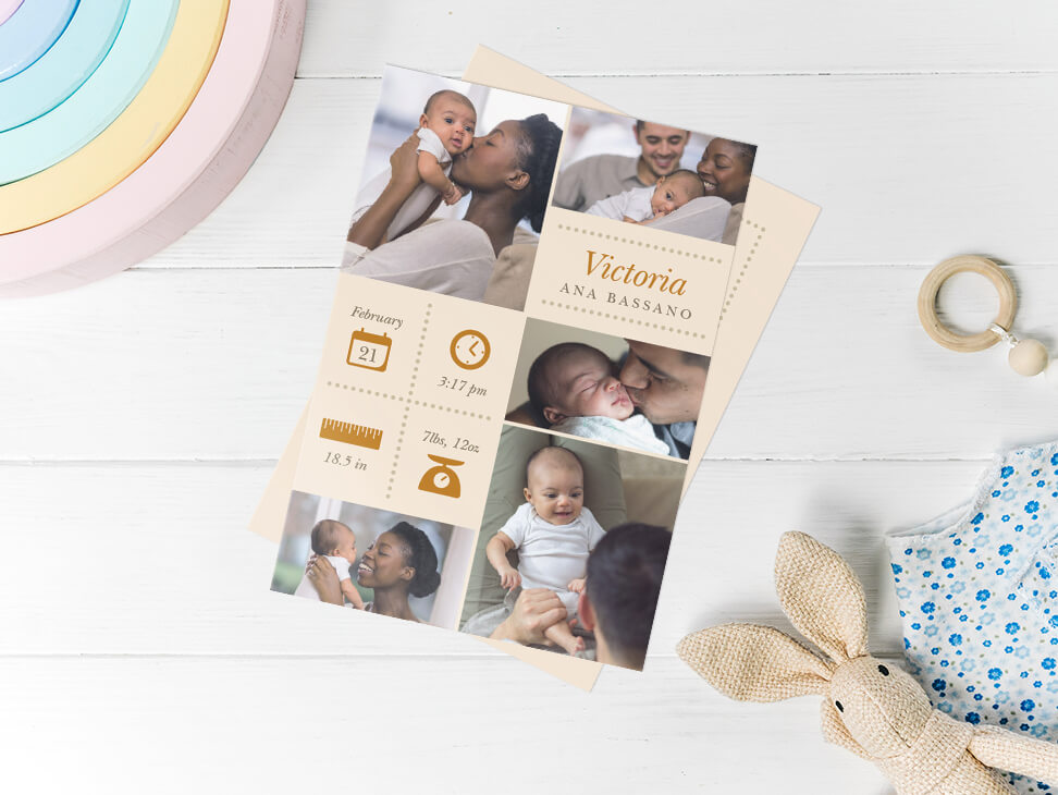 Sharing exciting news is fun and memorable. Create custom announcement cards for such moments so you can keep loved ones in the loop about important life events such as weddings, births, graduations, moving and more.